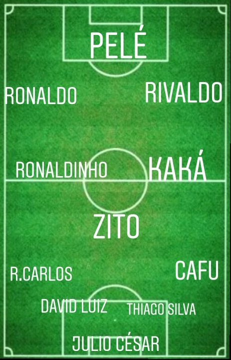 Delanteros: Ronaldo Nazario, Rivaldo, Pelé.