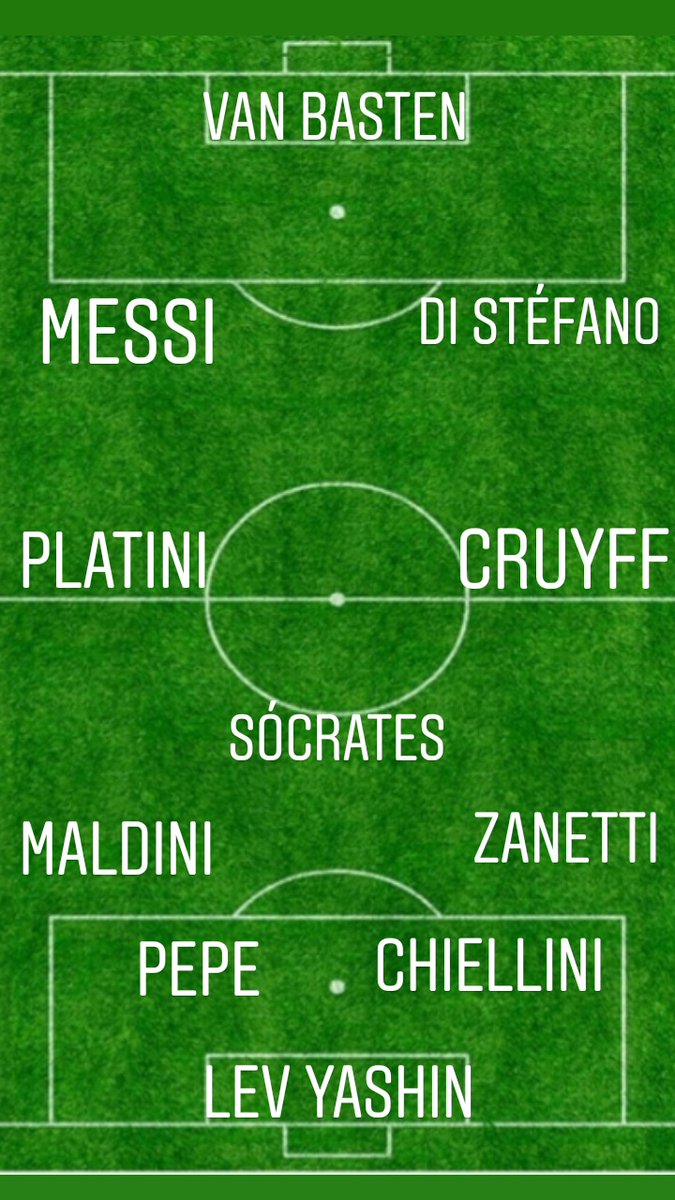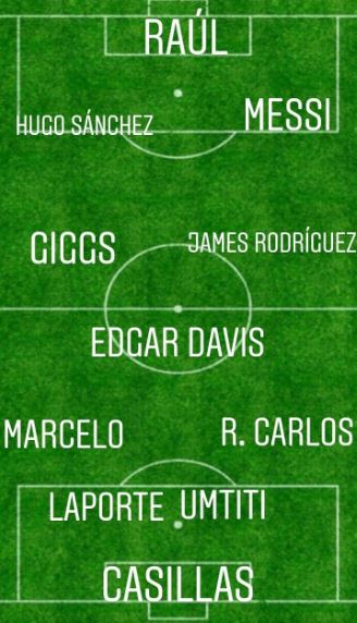 Delantera: Leo Messi, Hugo Sánchez, Raúl.